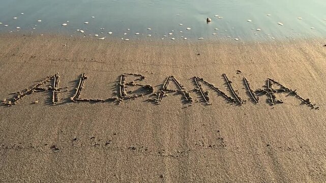 Explore Word Made of Wooden Letters Amidst Festive Greenery and Citrus, White Background