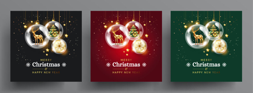 Christmas card template set in luxury black, red, green and gold colors - vector illustration