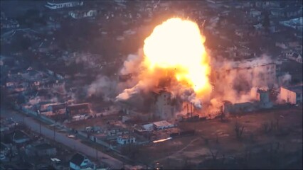 Missile blew up the house. Huge explosion of building. Mariupol war footage.