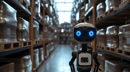 A warehouse robot sorting and stacking products, preparing them for shipment