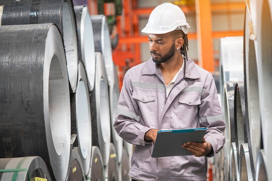 A warehouse worker uses a laptop to manage inventory, ensuring efficiency and safety in a modern industrial environment.