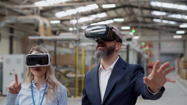 Two diverse warehouse workers sharing a discussion in equipment