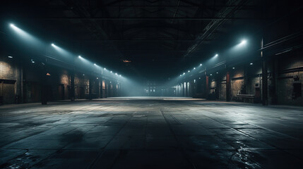 Evoking an Ambiance of Empty Warehouse with Dramatic Lighting. Generative Ai
