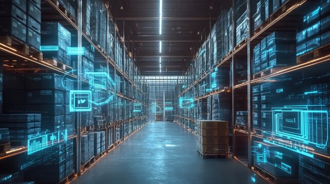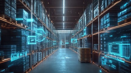 top view of the warehouse storage . Global logistics network distribution transportation, logistics