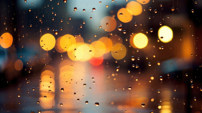 Capture the essence of a rainy day with dazzling rain bokeh effects, as tiny droplets dance and shimmer in the soft, warm glow of streetlights.