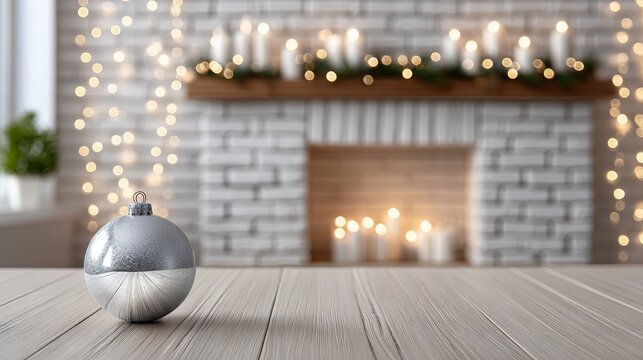 Blurry Christmas tree lights create a warm and cozy atmosphere in a softly illuminated interior with beige and white decor