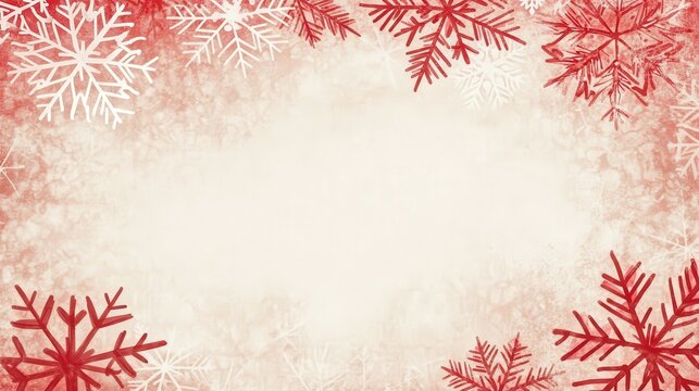 Festive winter background decorated with red snowflakes on a soft, textured surface perfect for holiday greetings