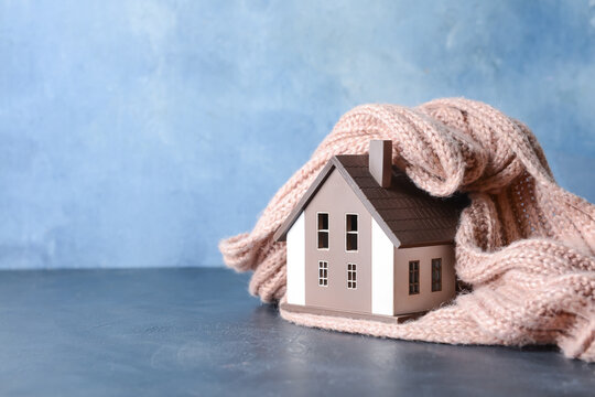 Pretty woman smile stand outside street snow сold park forest weather winter holiday New Year Christmas dressed knitted warm sweater and scarf, blue eyes copy space blurred bokeh background.