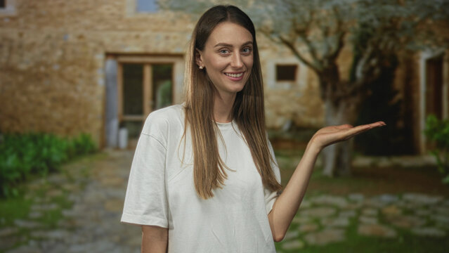 A happy, smiling senior woman with elegant grey hair holds a blank white sheet of paper, offering ample copy space against a clean, bright background. Her cheerful expression conveys warmth and approa