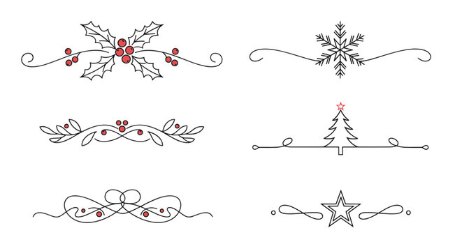 Winter-themed decorative text dividers with holly, snowflakes, and Christmas elements