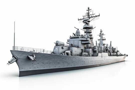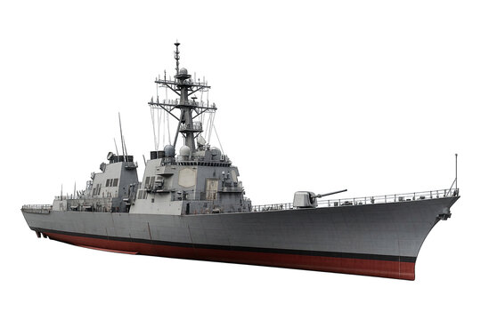 Modern navy warship with radar and weapon system, isolated on transparent background, generative ai