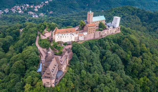 Aerial view of Wartburg Castle. UNESCO world heritage in Thuringia, Germany