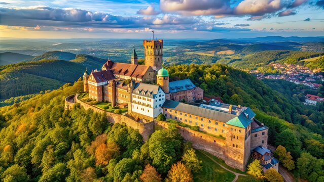 Aerial view of Wartburg Castle in Thuringia, Germany, Wartburg Castle, Thuringia, Germany, UNESCO, world heritage