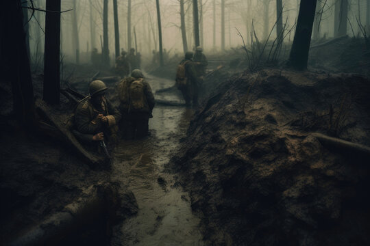 WWII Grit: Soldiers Confronting Rain and Mud