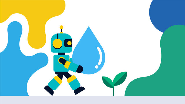 Mini Eco Robot Water Carrier - Modern Flat Illustration - World Water Day