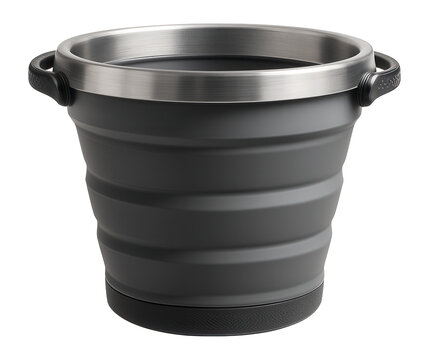 Collapsible silicone bucket for easy storage and transport of water on a construction site.