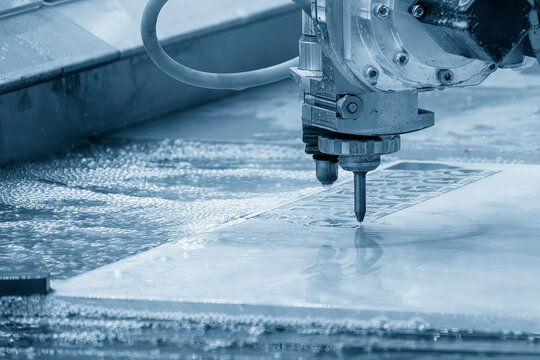 Machine using water pressure to cut through stainless steel materials