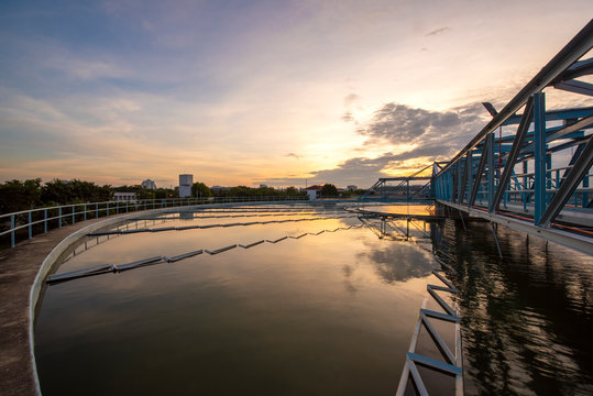 water treatment plant with sunrise