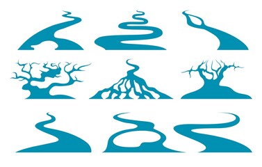 The river icon represents flowing watercourse that travels across land. It symbolizes movement, natural beauty, and the essential role of waterways.