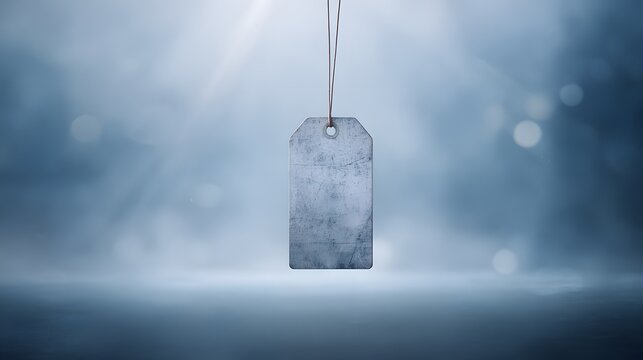 Vintage paper tag floating in blue space with abstract texture, minimalist design concept.