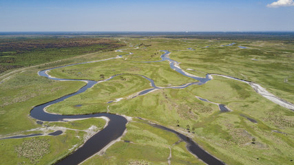 Aerial view of Little River estuary in Wells Estuarine Reserve, Maine