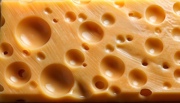 Close examination of a semi-hard cheese texture with waxy rind and characteristic holes. Generative AI