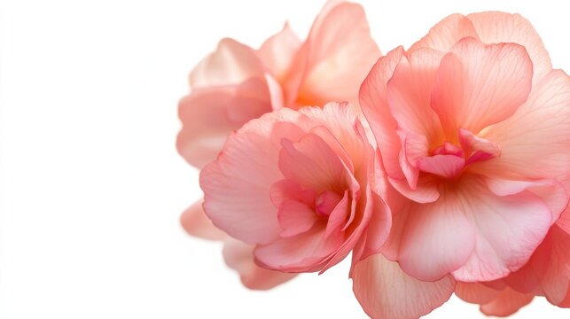 A close-up of a cluster of pink begonia flowers with their waxy texture, isolated white background, minimalistic art style