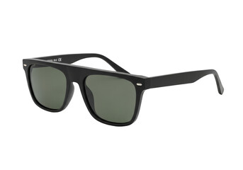 A stylish black sunglasses with a classic wayfarer design isolated on a white background view
