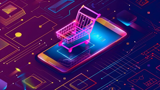 Progressive Web Apps (PWA) in E-commerce: A sleek, fast-loading e-commerce platform represented as a glowing web interface, offering a native app-like experience. The design focuses on speed, engageme