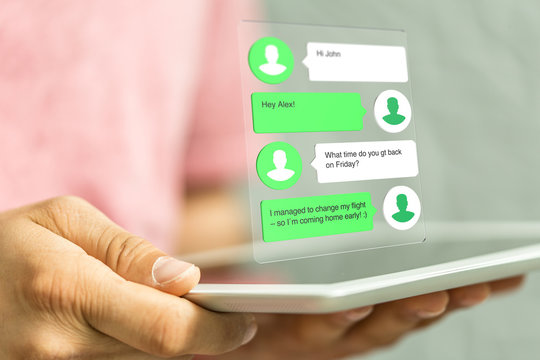 Customer using online service with chat bot to get support. Chatbot conversation concept. Virtual assistant and CRM  software automation technology.