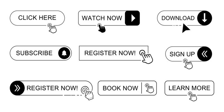 Web interface navigation buttons icon set. Slider arrow buttons symbols. Next and previous round buttons for app. Simple website arrow buttons in three different styles collection.