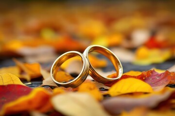 Two gold wedding rings on a textured surface symbolizing marriage and commitment, love, and ceremony.