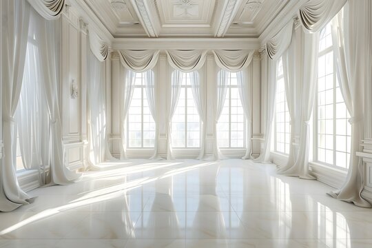 Modern and stylish interior design of a wedding ballroom with a touch of luxury and prestige. Created with generative AI technology.