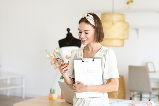 Equipo joven de Wedding Planners organiza los horarios para una boda