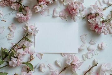 a blank visit card surrounded by flowers.