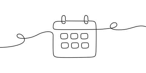 calendar continuous line drawing. One line art of calendar, memorable date, countdown, holiday, weekday and weekend. vector illustration