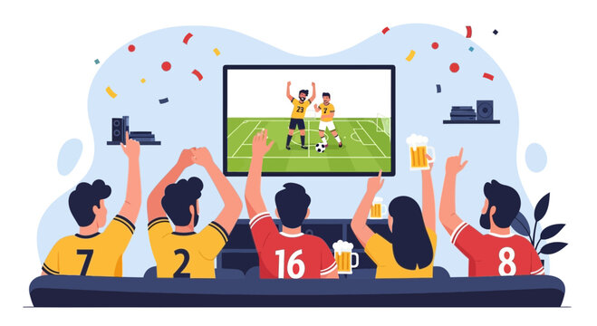 Football Fans Celebrate Goal Cheering Sport At Home Arena Televised Event