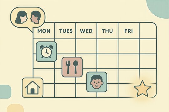 Weekly infographic schedule action-packed days colorful design weekly overview vibrant environment top-down view