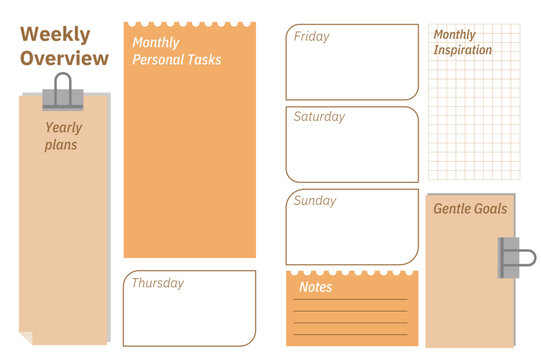 Weekly planner template with calm warm tones for enhanced organization