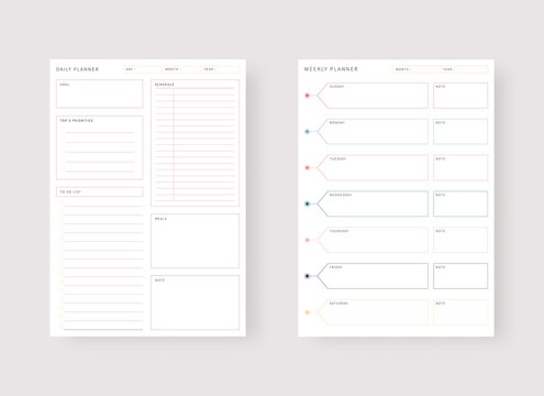 Daily and weekly planner template. Set of planner and to do list. Modern planner template set. Vector illustration.