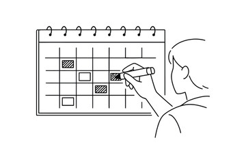 Individual focusing on productivity while planning their weekly schedule with a calendar and planner, high resolution