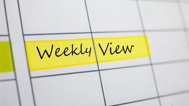 executive time allocation concept. Weekly planner highlighting a "Weekly View" section in yellow.