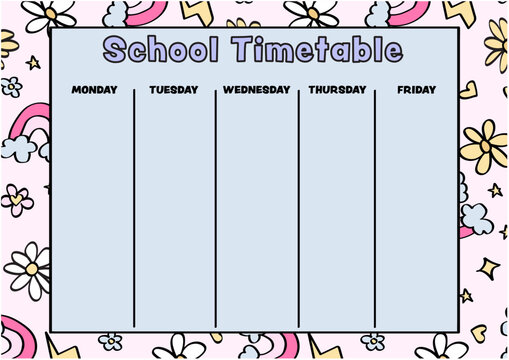 cute cartoon kids and school timetable