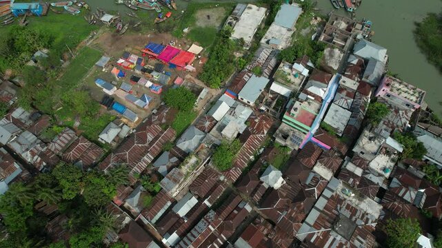Aerial view of the weekly floating market, Barisal Division, Harta, Bangladesh