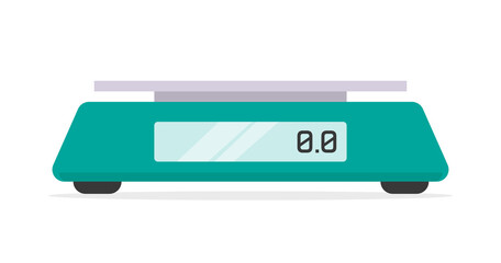 Scale kitchen digital electronic vector or food weigh libra measure icon isolated machine flat cartoon illustration on white modern cutout graphic clipart
