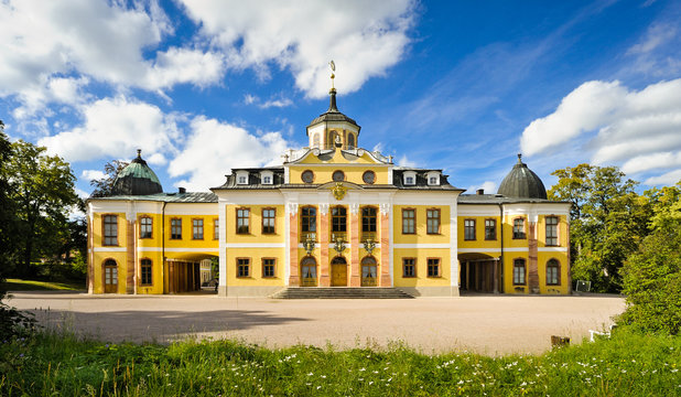 Colorful garden and fountain at the Belvedere castle in Weimar, Germany