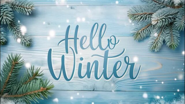 Happy Winter background. Hello Winter season. Cartoon illustration Template for Poster, Banner, Greeting, Card, Flyer, Cover, Sale, Promotion. Snowfall, Snowy weather. welcome winter design