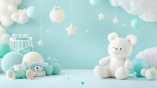 A cozy and welcoming baby room with gentle colors, plush toys, and a soft crib for a soothing atmosphere that enhances relaxation.