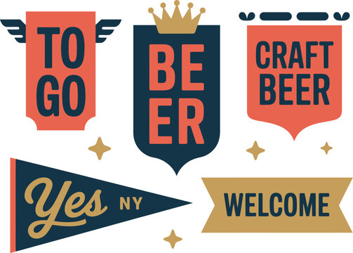 Retro typographic banners and emblems for beer and welcome messages in a vintage design
