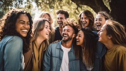 Happiness group of people huddle and smiling together. Solidarity and teamwork concept.